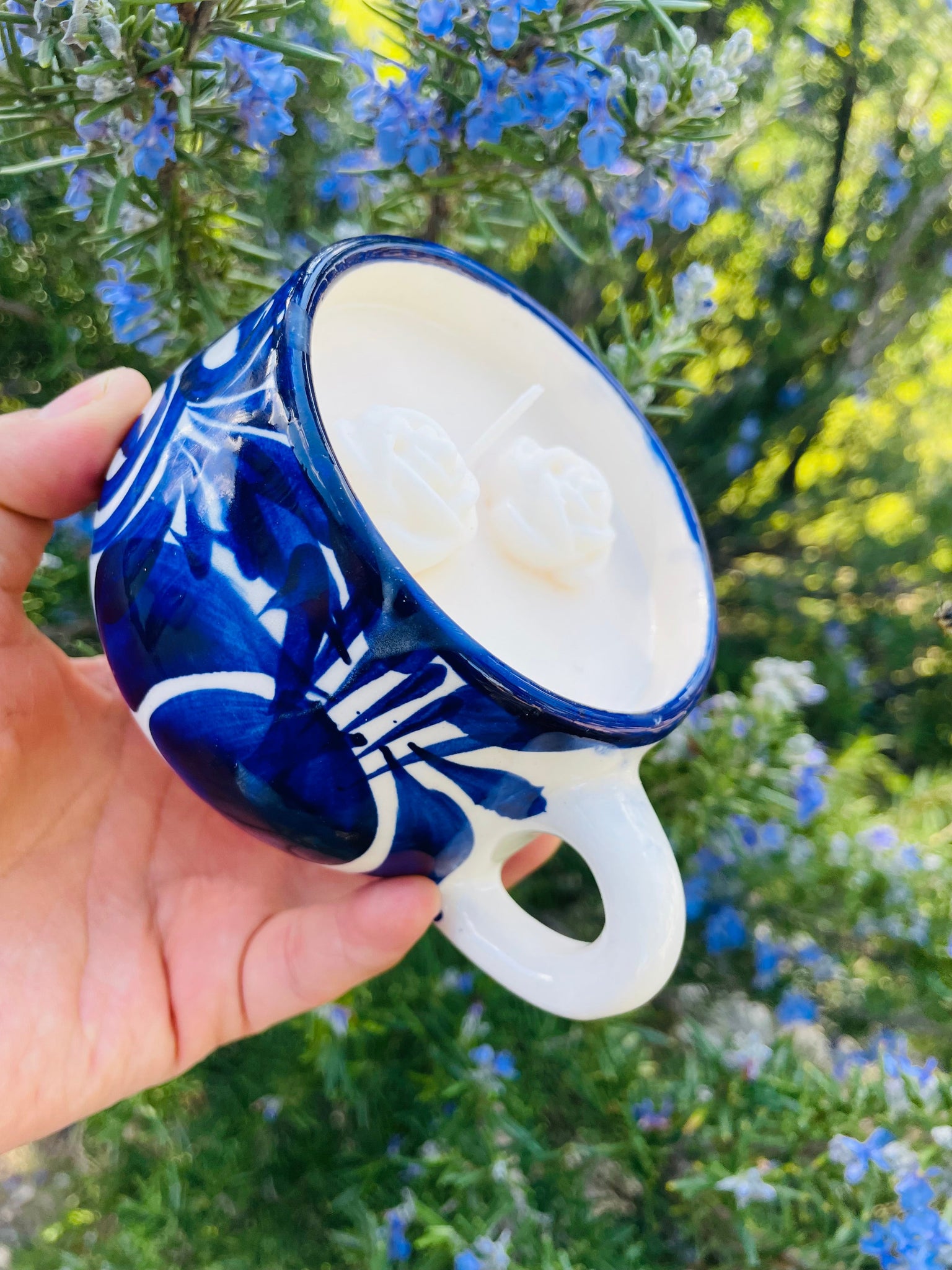 This beautifully handcrafted piece is reusable before and after. This artesania cannot only be used as authentic Mexican home decor but also as an aromatherapy candle to remember mi pueblito essences. Once the candle melts you can also reuse the ceramic container with your familia in the kitchen.